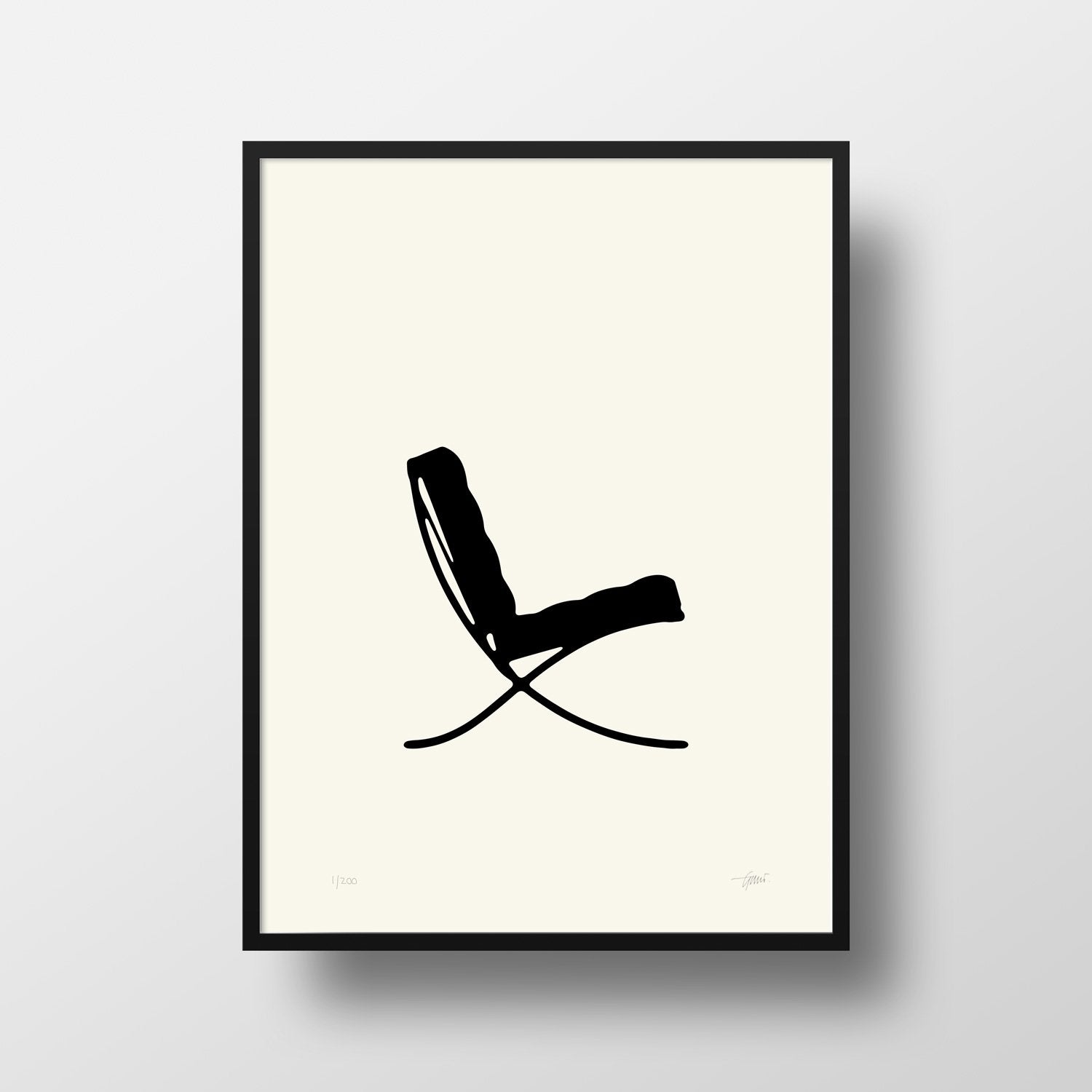 GRKArtPrint based on the Iconic BARCELONA chair from 1929 by Ludwig Mies van der Rohe. Limited edition of 200, signed and numbered by the artist. The print is museum quality Gicllée print, size 30 x 40 cm.
