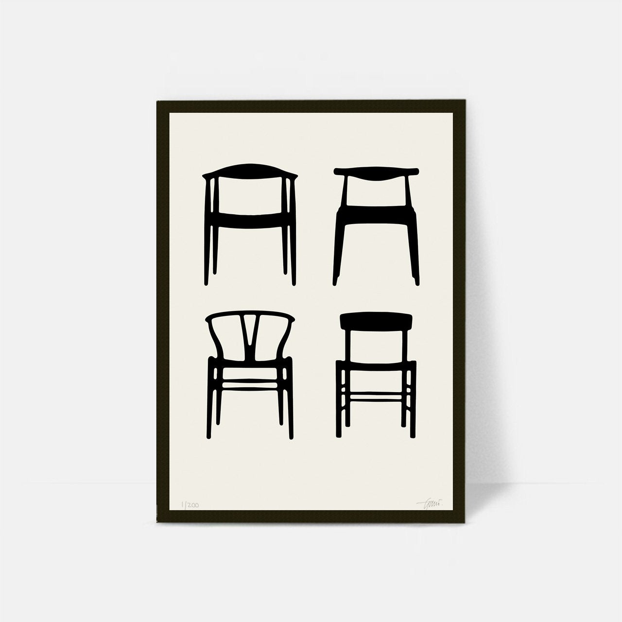 ArtPrint based on four Iconic Danish chairs, The Chair PP503 from 1949 the Elbow Chair CH20 from 1956, the Wishbone Y-Chair from 1949 all three by Hans J. Wegner and the Peoples Chair from 1947 by Børge Mogensen.
