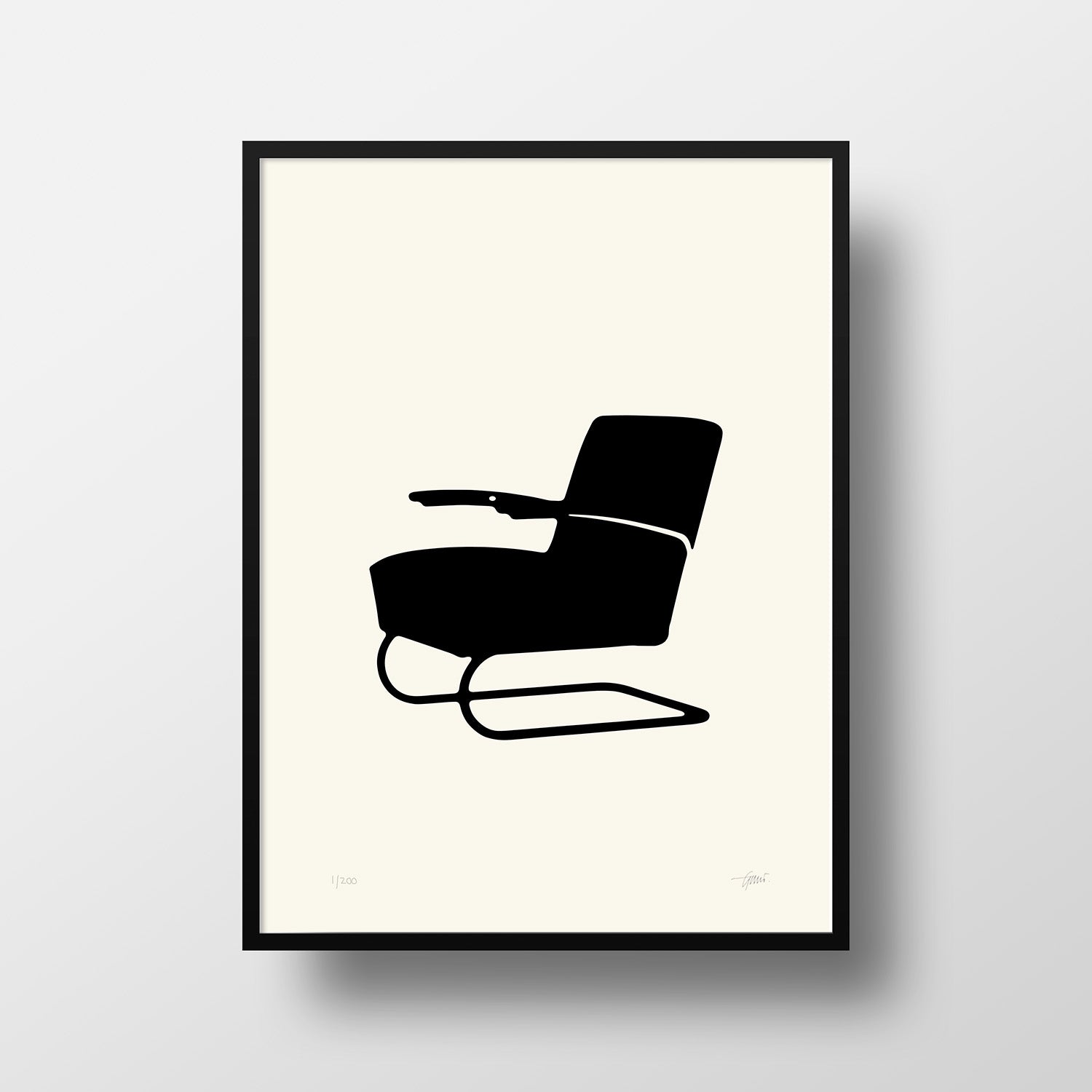 Unique art print based on the Iconic S411 chair from 1932 by Thonet.
